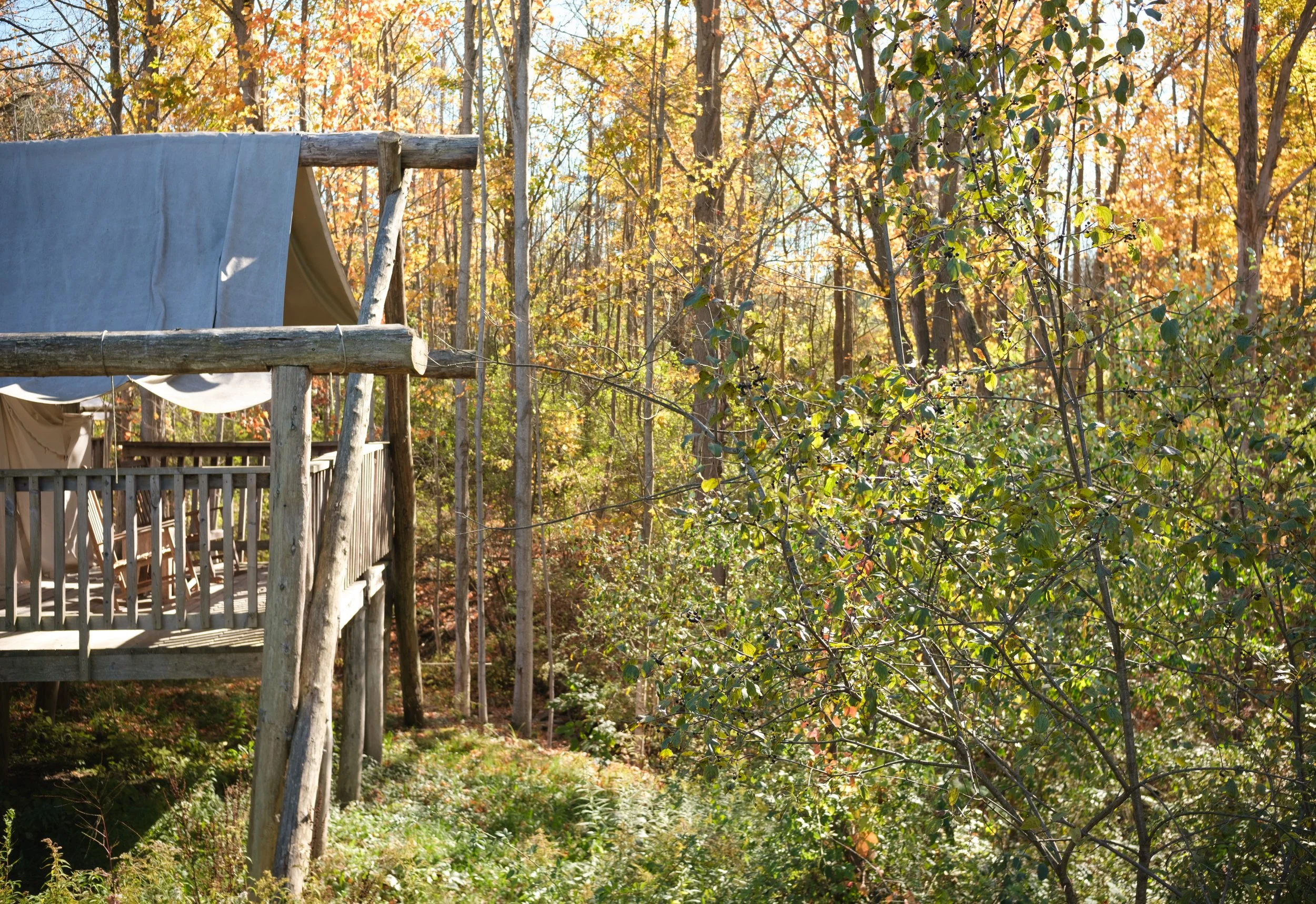While there are now many glamping experiences in New York state, we are the only glamping site in Ithaca and we take pride in Firelight Camps’ individuality. Located on the grounds of La Tourelle’s 15-acre estate, our glampground is more than just a place to stay. It’s a full-on experience where you can enjoy meals and drinks, explore nature, hang out with other travelers, and take part in on-site events. Read on to discover everything your stay includes.